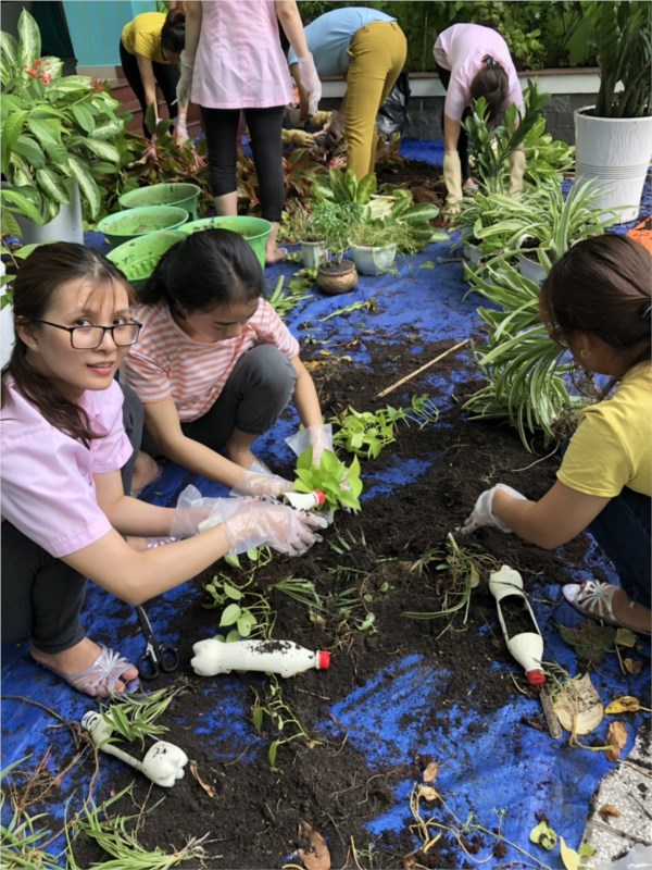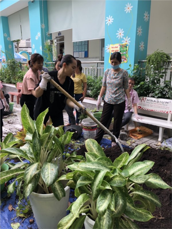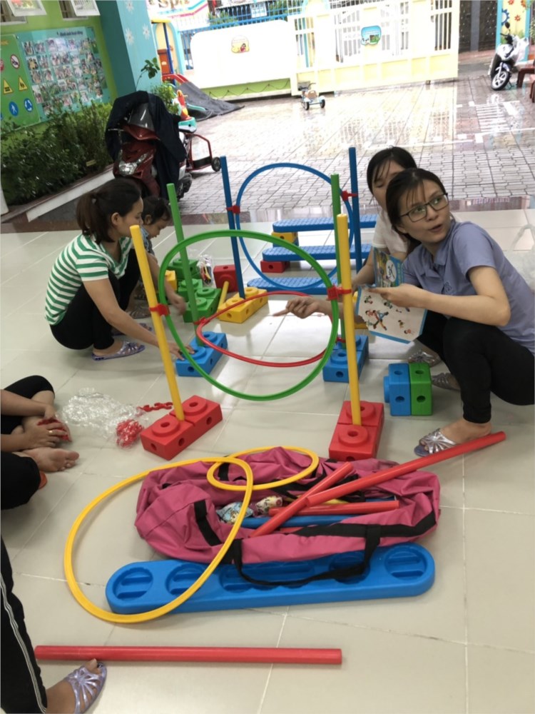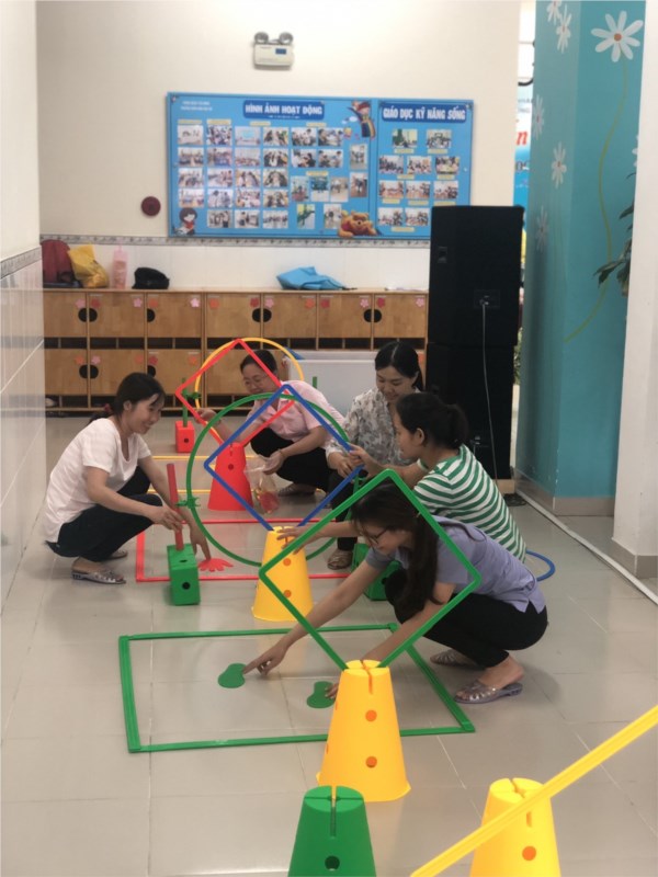 Giáo viên các nhóm lớp chỉnh sửa lại góc hoạt động cho trẻ