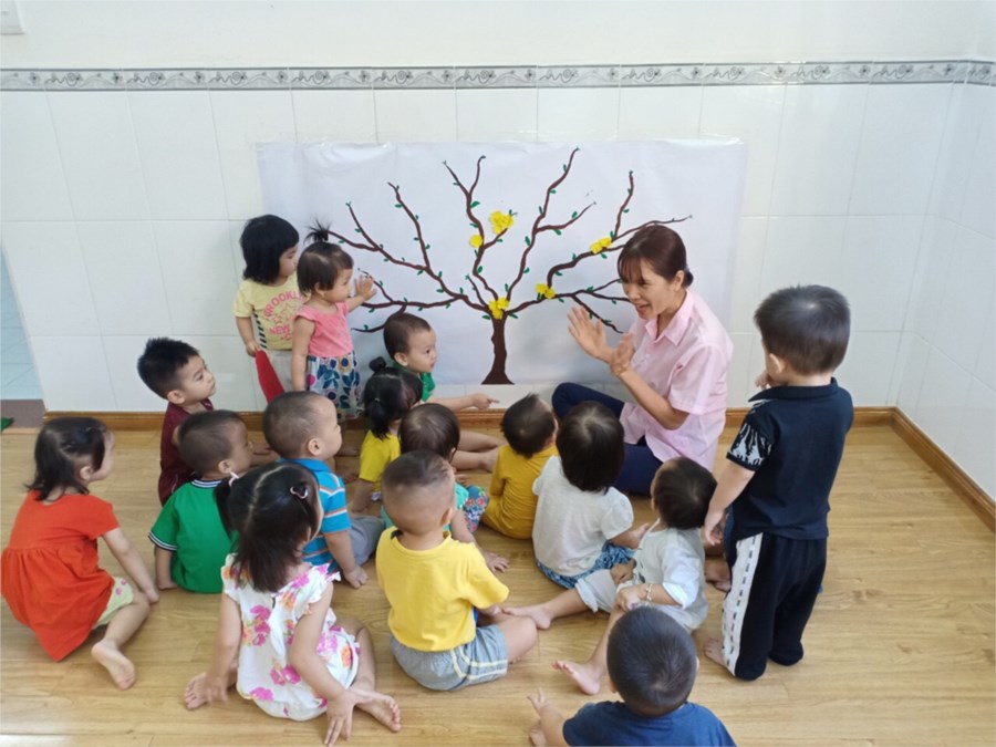 8. CÔ VÀ CÁC BÉ LỚP CHỒI 2 TRANG TRÍ CÀNH MAI, CÀNH ĐÀO BẰNG NGUYÊN VẬT LIỆU