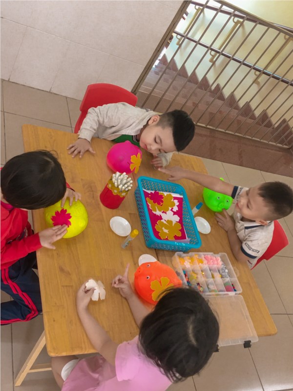 3. CÁC BÉ LỚP 25-36TH (2) TÔ MÀU LÀM THIỆP VÀ QUẢ CẦU HOA MAI