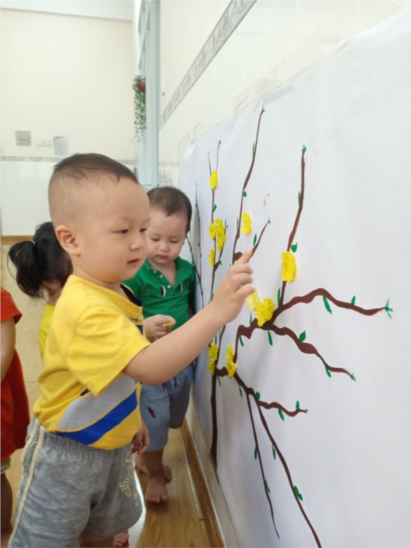 1.CÁC BÉ LỚP 19-24TH CÙNG CÔ DÁN HOA MAI