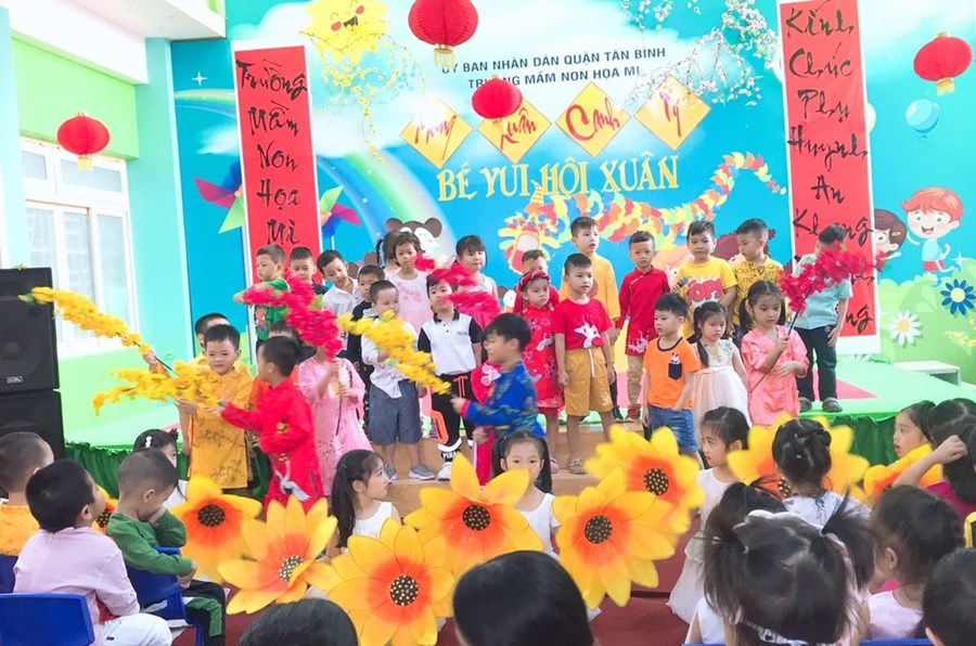 - 5. Lớp Chồi 1 biểu diễn Liên khúc xuân “Đón xuân- Chuyện cũ bỏ qua- Tết ơi là tết”.